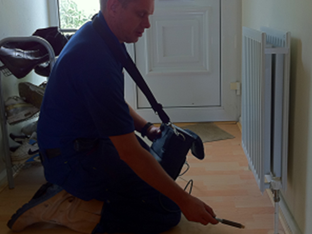 Tracer gases are a non-invasive way to detect a leak in a central heating system. Firstly the heating system is drained and a completely safe non toxic mix of gases is filled into the pipework, then a highly sensitive probe is run along the pipework that runs throughout the property, as the gas is released through many cracks it alerts the probe and the location of the leak is found. As the gas rises from the damaged pipework its particles are small enough to travel up through wood, carpet, tiles and even concrete! This means we are able to use this method to locate the leak without having to cause any mess or damage to your home.